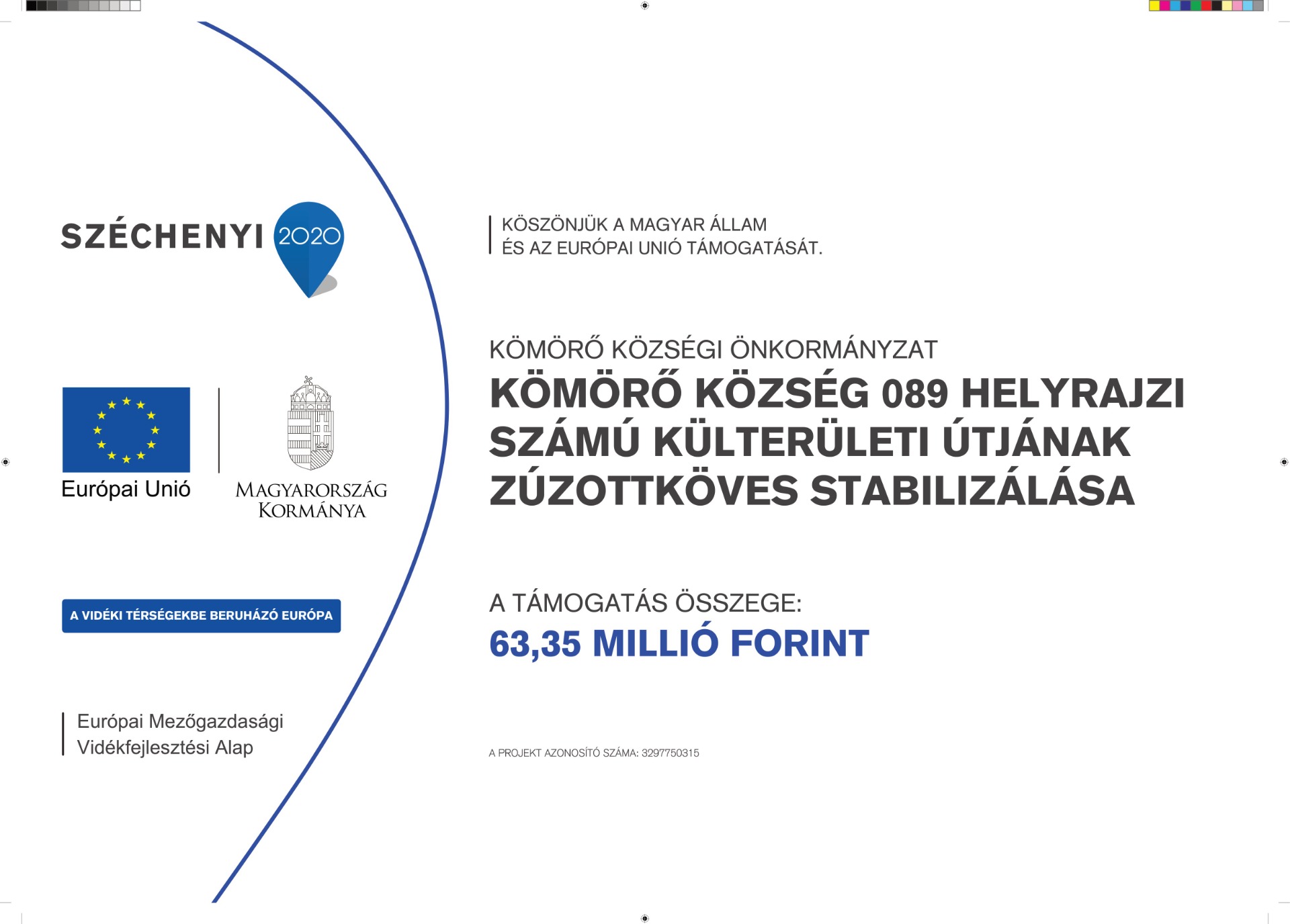 A projekt keretében Kömörő Község külterületén található 089 helyrajzi számú út szakaszának zúzott köves stabilizációs munkálatai valósultak meg a 0+000 kmsz és a 1+440 kmsz között, 4 méter szélesen. A kivitelezési munkálatok 2023.03.07-re elérték a 100 %-os készültséget.Az út pályaszerkezete az alábbi rétegrenddel került kialakításra:- 5 cm M22 mechanikai stabilizáció, - 20 cm M56 zúzottkő. A földművet trg=90%-ra kellett tömöríteni. A burkolat 2,5 %-os egyoldali eséssel készült és 4m-es szélességgel. A rekonstrukciót követően a padka rendezése 1 méter szélességben mindkét oldalt föld anyagú, füvesített, illetve az árkok takarítása, cserjézése, alap állapotba történő profilozása is megvalósult. A munkálatok elvégzése után a meglévő csapadékvíz az útburkolat oldalán tervezett szikkasztó árokban szikkad el, illetve a meglévő rendszeren keresztül folyik tovább.A projekt keretében történő rekonstrukció eredményeként, kialakításra került Kömörő külterületén egy a mai kornak megfelelő út, amely által jelentősen javult a település külterületén lévő mezőgazdasági földterületek, gyümölcsösök megközelíthetősége gazdák számára.